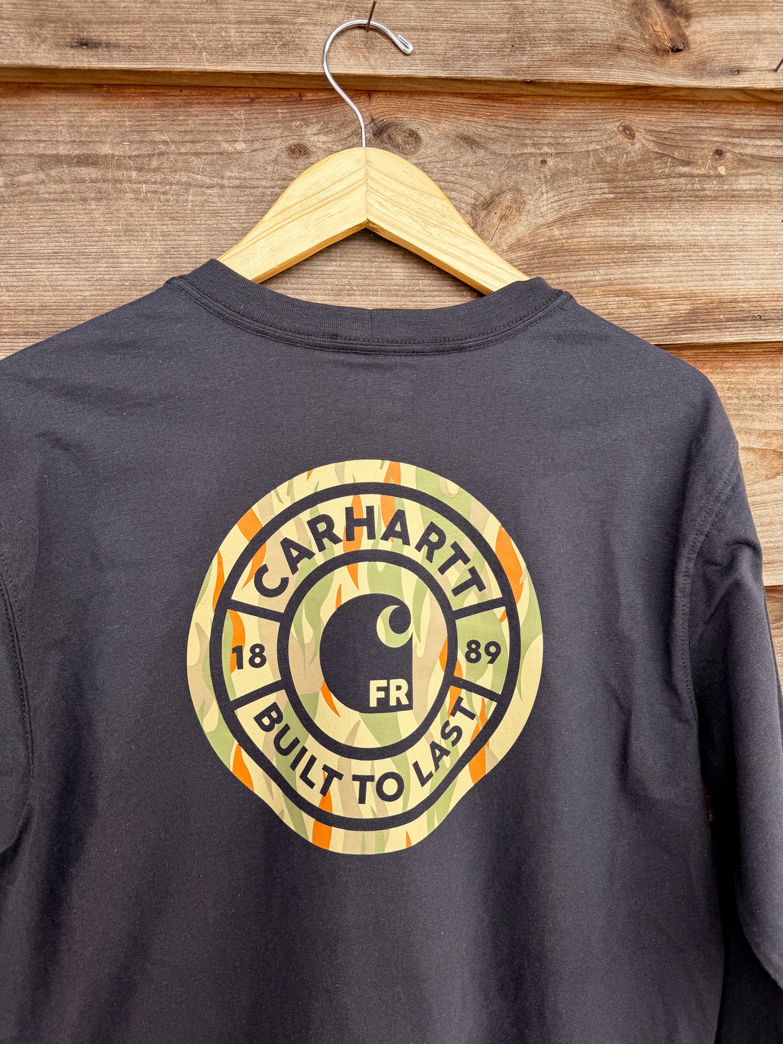 Built for the job but made to stand out. This FR long-sleeve tee delivers the same lightweight protection and performance you trust, now with a bold camo Carhartt graphic on the back and a logo hit down the sleeve.