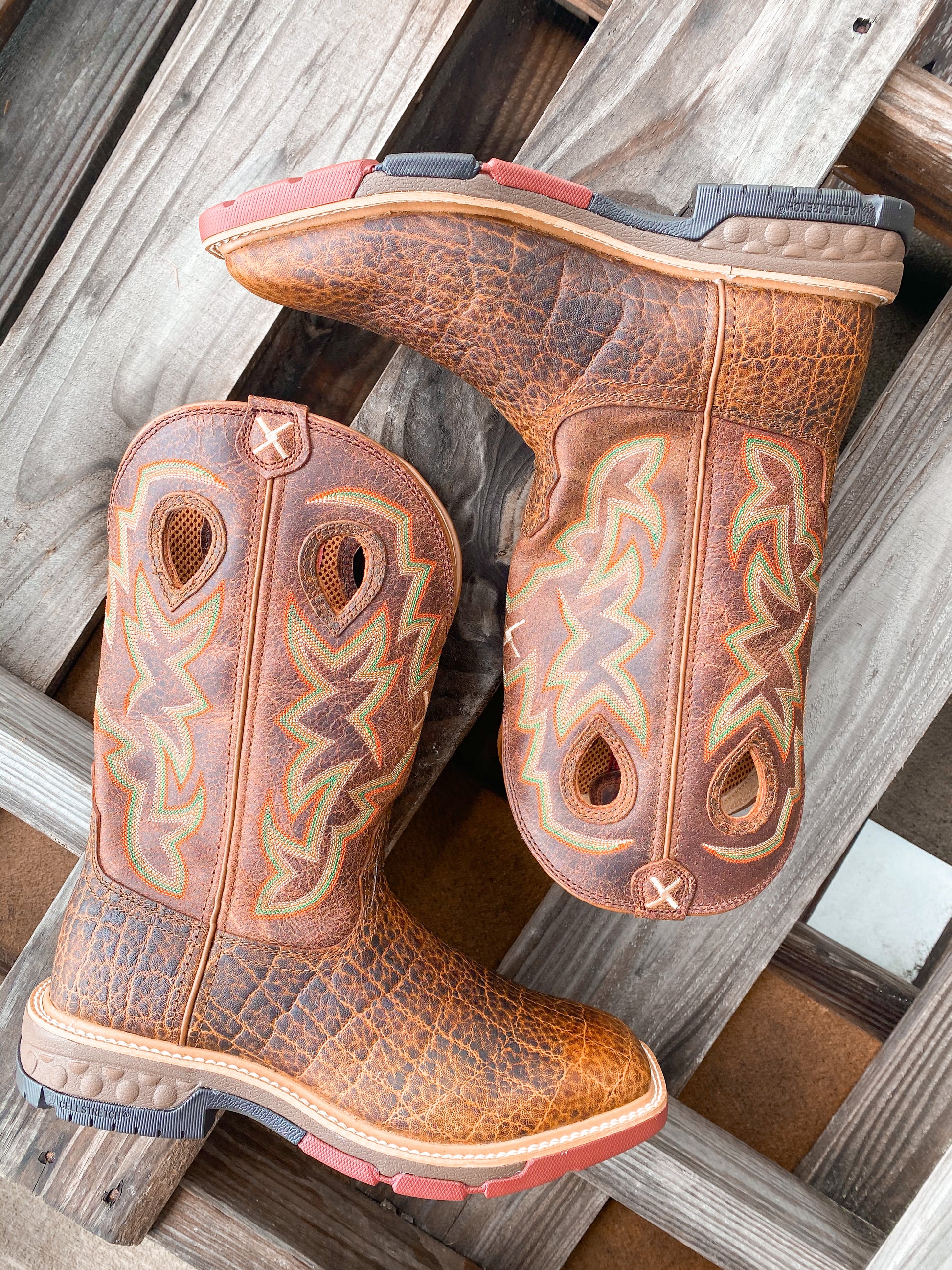 - EVA midsole, integrated with Twisted X® patent-pending CellStretch® comfort technology, provides long-lasting comfort, stability, and durability.